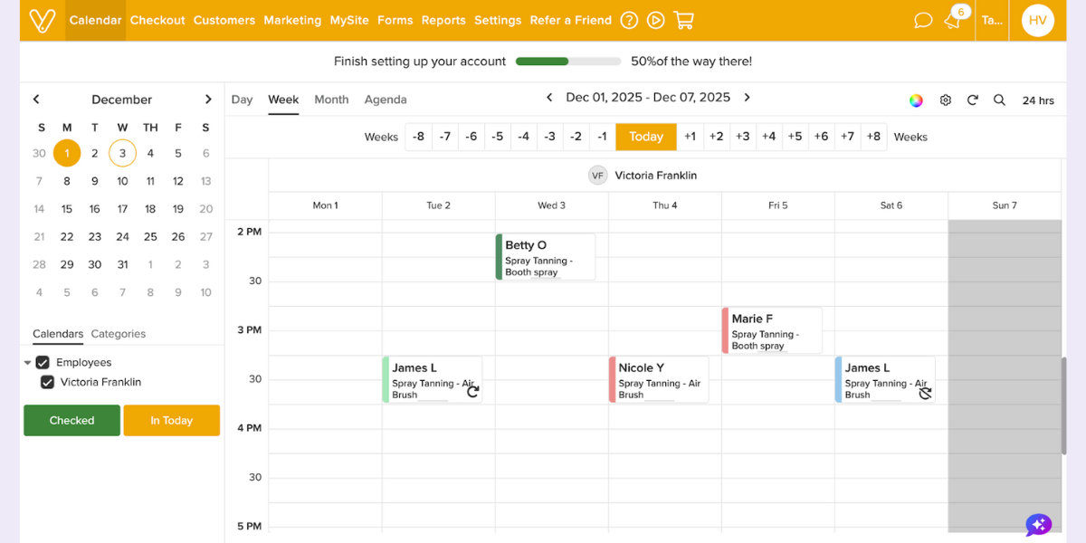 It’s designed to help you get up and running quickly, with simple calendars, branded booking pages, and a low learning curve. Made with spa and tanning studios in mind, Koalendar is perfect if you need dependable tanning bed scheduling and not a full POS or inventory suite.